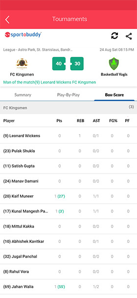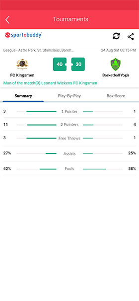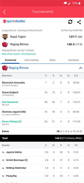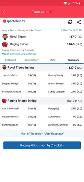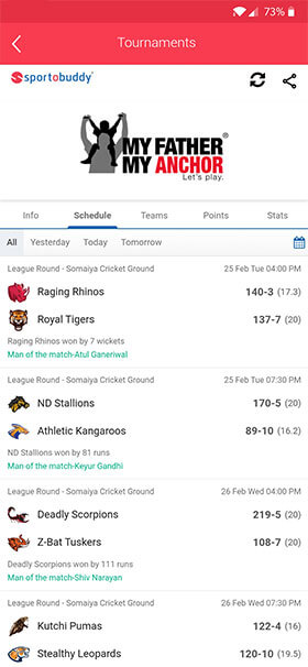 Amazing App! The Sportobuddy App is very useful on ground for tracking the scores. Very easy interface to use.